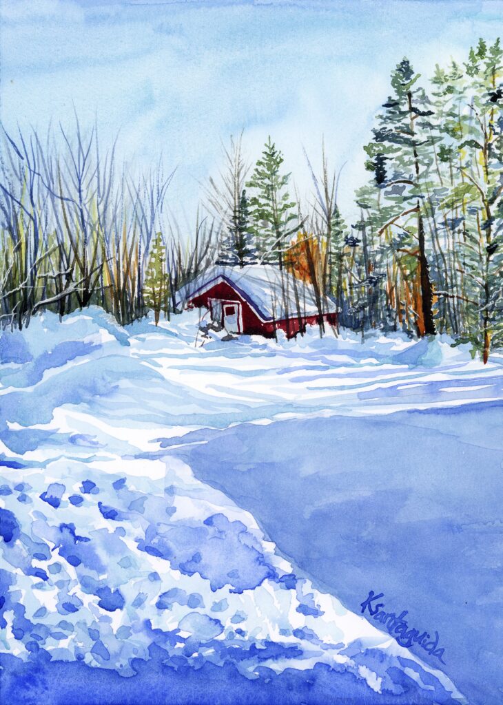 Watercolor painting forces me to slow down, find creative solutions, and to not be set in my ways. I know what I want to create, but I allow free will and happenstance to make appearances and if necessary to take the wheel. The results surprise me but in a good way. This brings me back to my canvas every time.
