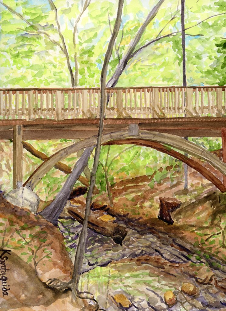 There is something magical about being in a secluded spot, listening to the birds overhead, while I capture a moment in time. Sometimes I nail it first try. Other times the weather dictates what is possible in the allotted time. If it’s a particularly humid day, my watercolors do not fully dry on my paper and I have to slow down or risk muddying the paints. It’s an ongoing dance of adapting to the situation and quick decisions all while chasing the light and shadows.